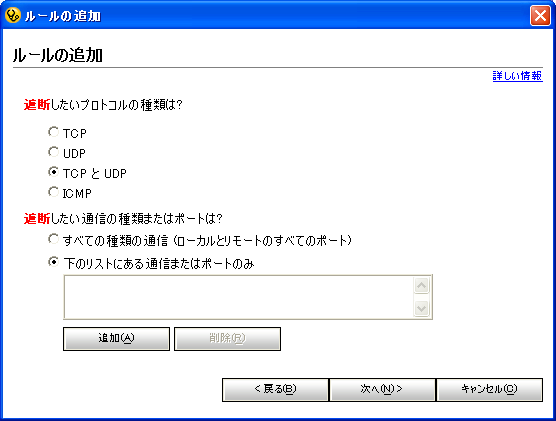 ![「下のリストにある通信またはポートのみ」をクリックし、[追加] をクリック](img/nav2006-11s.png)