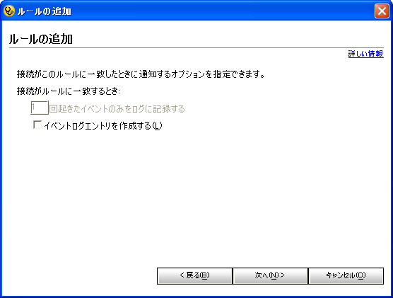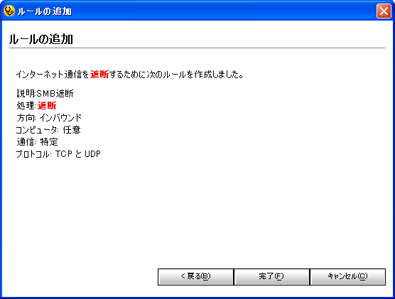 - ルールの名前としてたとえば「SMB遮断」と入力し、[次へ] をクリックします。