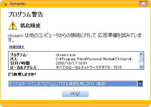 「ノートン・アンチウイルス 2007」からのメッセージへの対応