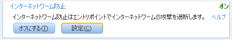 - 「インターネットワーム防止」の下に選択パネルが表示されますので、[設定] をクリックします。