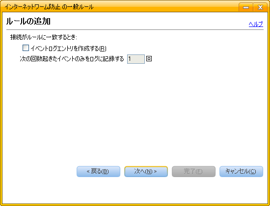 - 「インターネットワーム防止」の画面に戻ります。
