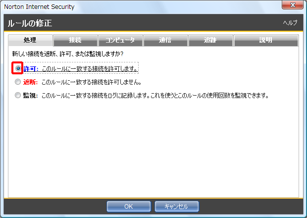 - 「ルールの修正」の画面が現れますので、[遮断] から [許可] に変更します。