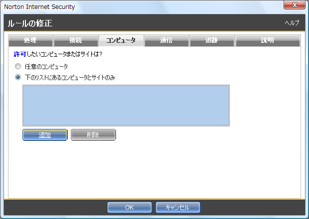 - [下のリストにあるコンピュータとサイトのみ] をクリックしてから [追加] をクリックします。