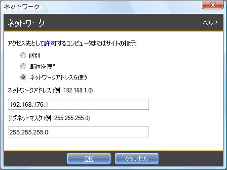 - 下の画面は、「ネットワークアドレス」に「192.168.176.1」を入力した例です。