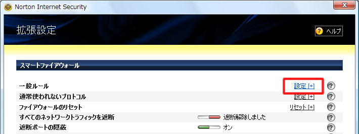 - 「拡張設定」の画面が現れますので、「一般ルール」の [設定[+]] をクリックします。