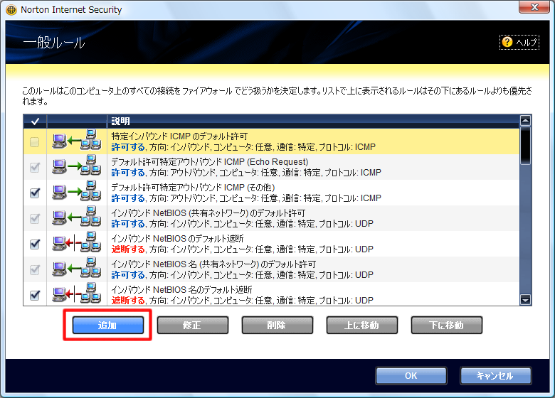 - 「一般ルール」の画面が現れますので、 [追加] をクリックします。