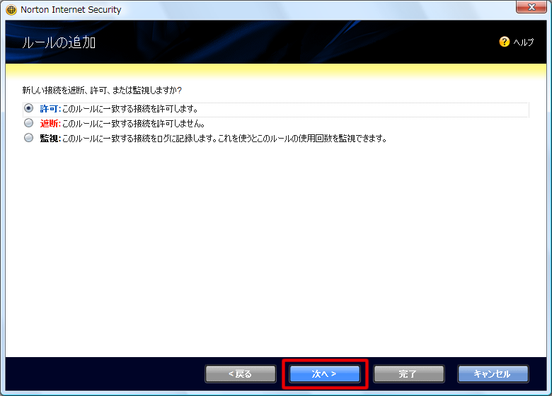 - 「許可」にチェックが付いていることを確認して、[次へ] をクリックします。