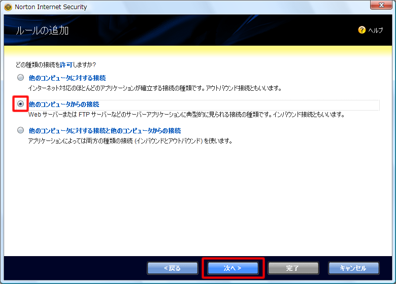 - 「他のコンピュータからの接続」にチェックを付け、[次へ] をクリックします。