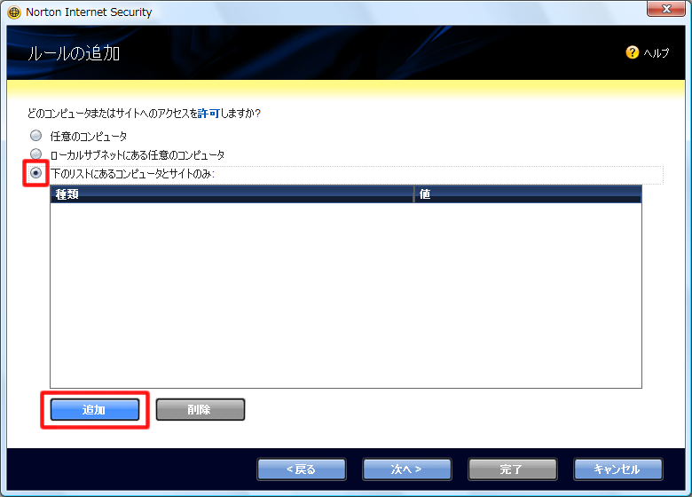![「下のリストにあるコンピュータとサイトのみ」にチェックを付け、[追加] をクリック](img/nis2009-07s.png)