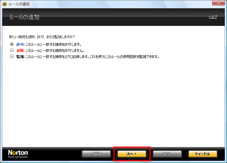 - 「許可」にチェックが付いていることを確認して、[次へ] をクリックします。