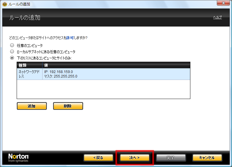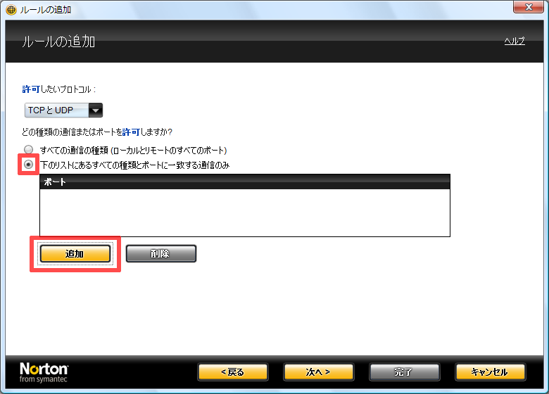 ![「下のリストにある全ての種類とポートに一致する通信のみ」にチェックを付け、[追加] をクリック](img/nis2010-10s.png)