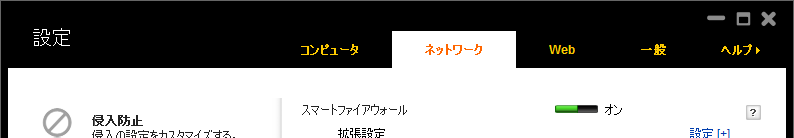 - 左の「スマートファイアウォール」をクリックし、「拡張設定」の [設定[+]] をクリックします。