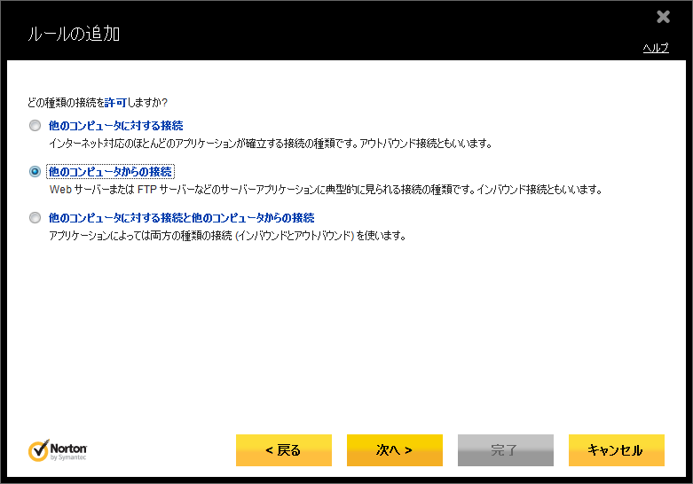 - 「他のコンピュータからの接続」にチェックを付け、[次へ] をクリックします。