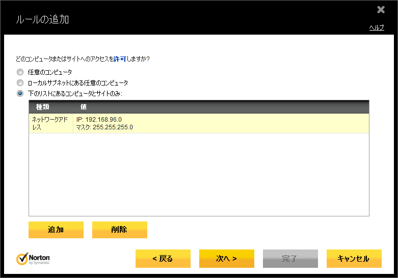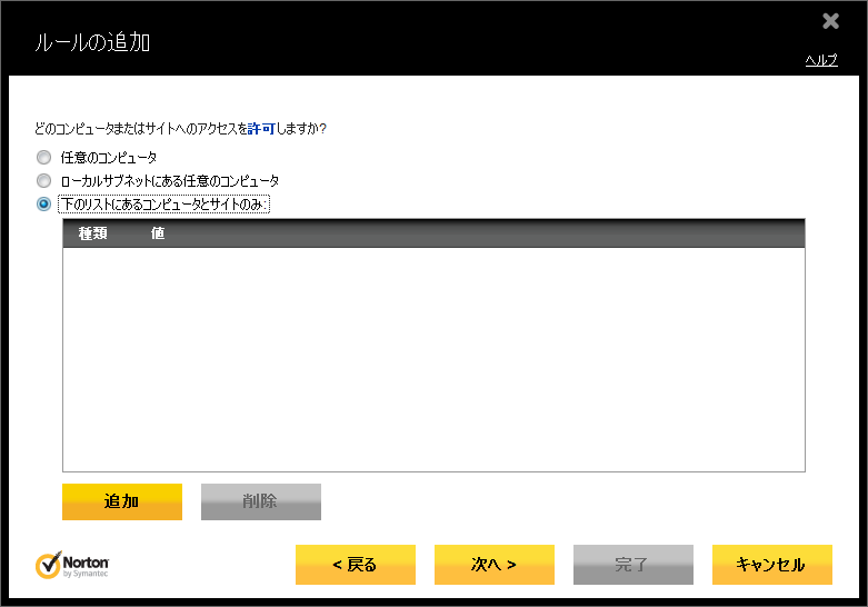 - 「下のリストにあるコンピュータとサイトのみ」にチェックを付け、[追加] をクリックします。