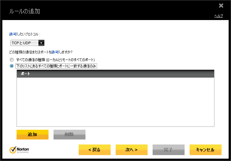 ![「下のリストにある全ての種類とポートに一致する通信のみ」にチェックを付け、[追加] をクリック](img/nis2012_11s.png)