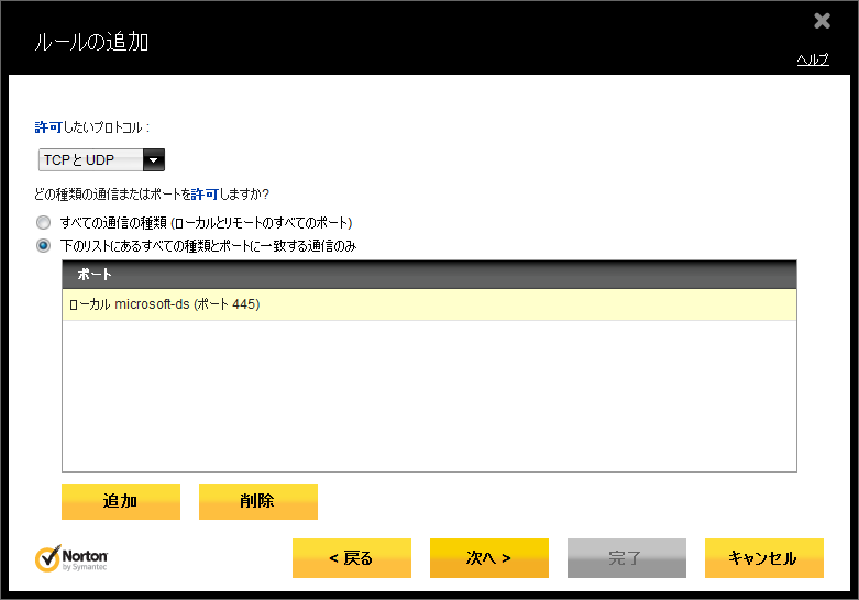 - リストに「ローカル microsoft-ds (ポート 445)」が追加されていることを確認して、[次へ] をクリックします。