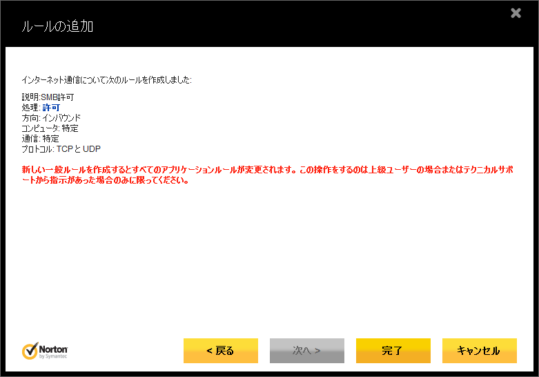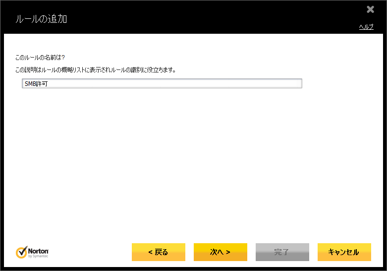 - 入力欄の文字列を「SMB許可」に書き換え、 [次へ] をクリックします。
