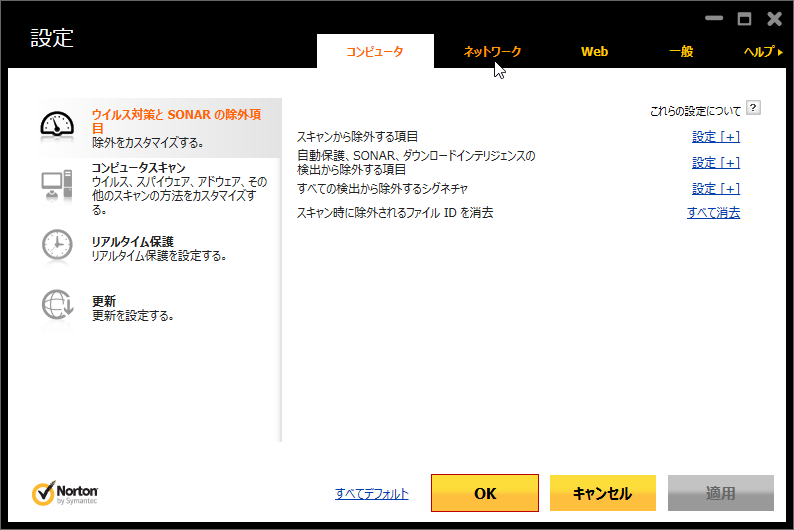 超漢字V:「ノートン・インターネットセキュリティ (2013年度版以降共通)」の設定