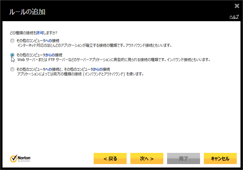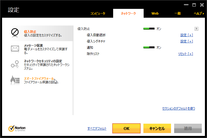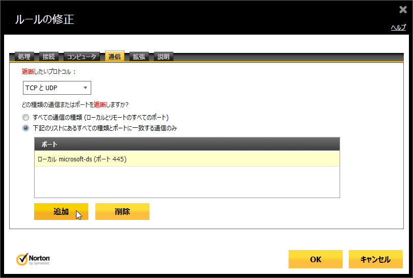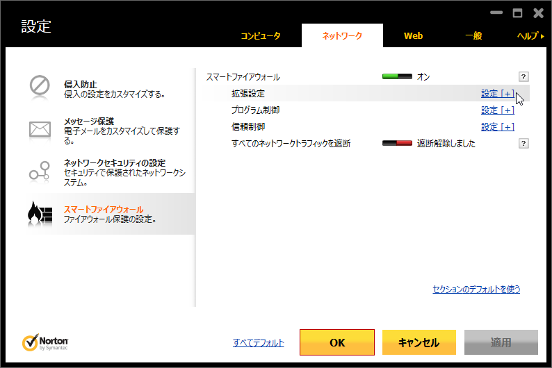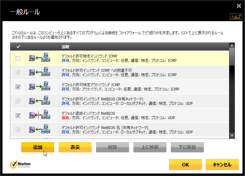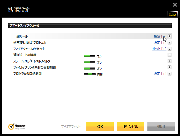 本文書は、「ノートン・インターネットセキュリティ」を、同ソフトが内蔵する独自のファイアウォール機能を使う設定で利用している場合を前提としています。