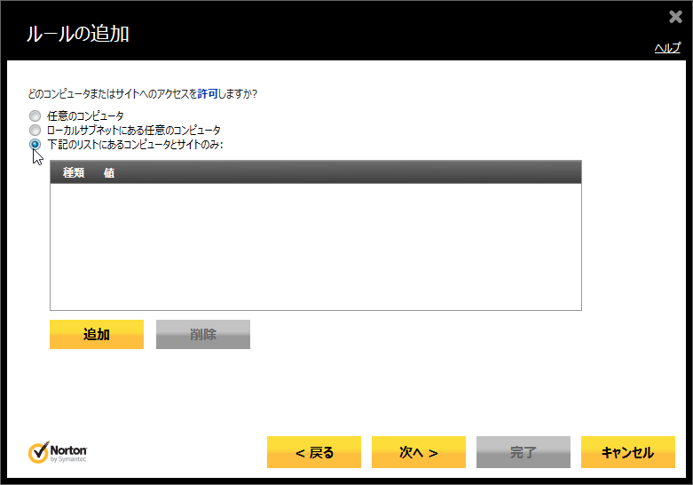 - 「下記のリストにあるコンピュータとサイトのみ」にチェックを付けます。