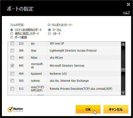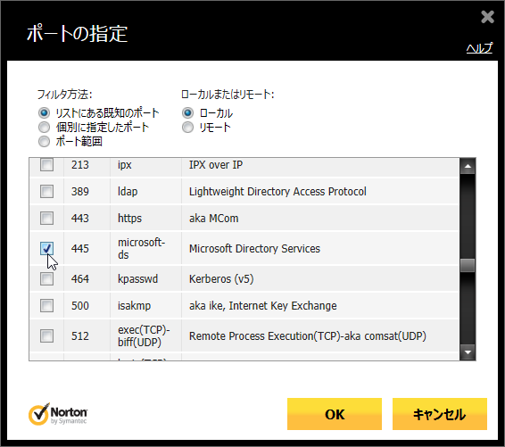 - ポートの一覧の中から「445」を探してチェックを付けます。