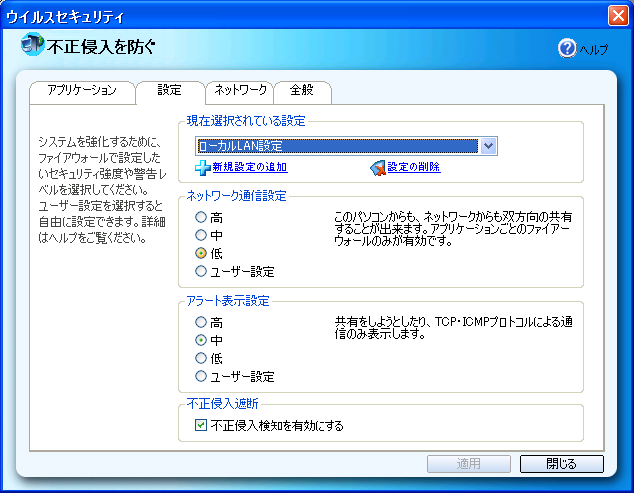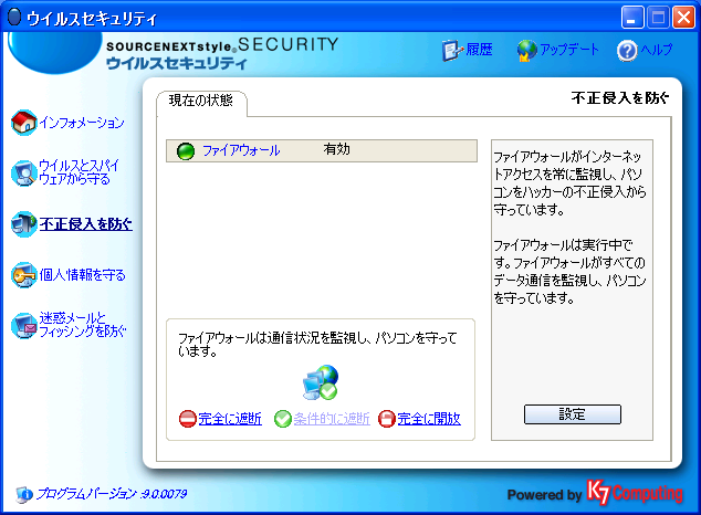 左にある [不正侵入を防ぐ] をクリックしてから、右下の [設定] をクリックします。