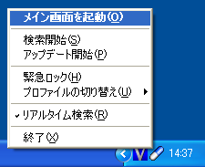 - タスクバーの右側にある「ウイルスバスター2006 インターネットセキュリティ」のアイコンを右クリックし、[メイン画面起動] をクリックします。