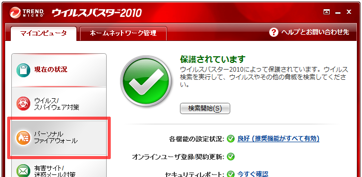 - メイン画面が現れます。、画面左にある「パーソナルファイアウォール」をクリックします。