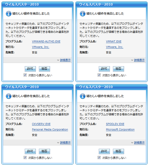 「トレンドマイクロ・ウイルスバスター 2010」からのメッセージへの対応