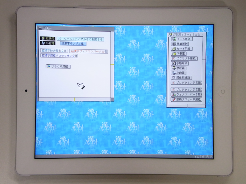超漢字Vを1024×768ドットに設定して iPad で全画面表示した例
