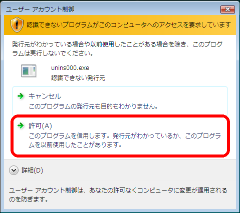 その場合、「許可」をクリックします。