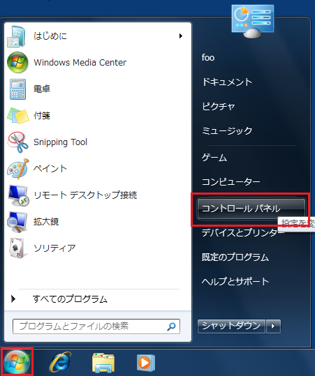 - Windowsの[スタート]ボタンをクリックし、[コントロールパネル]を選びます。