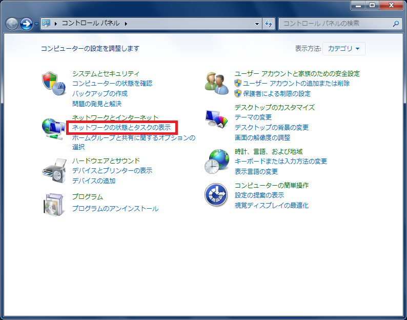 - 〈ネットワークとインターネット〉の項目にある「ネットワークの状態とタスクの表示」をクリックします。