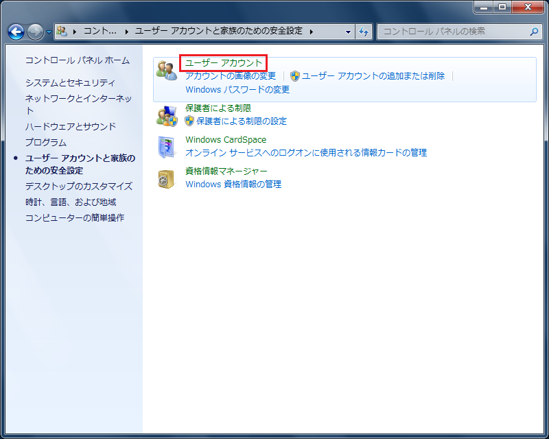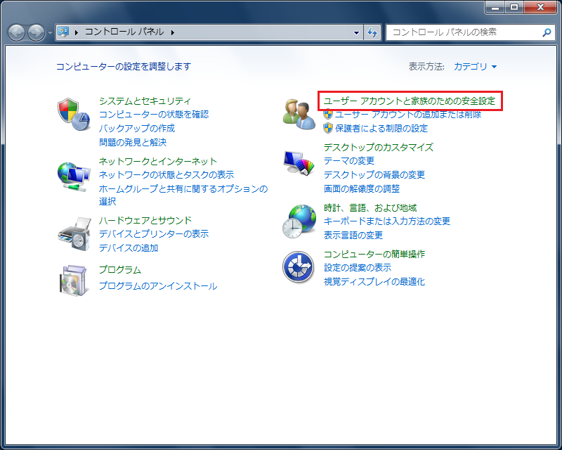 - 「ユーザーアカウントと家族のための安全設定」をクリックします。
