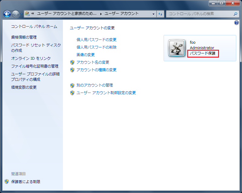 - 右側のアカウント名の下に「パスワード保護」と表示されていることを確認してください。
