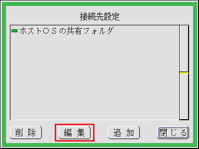 - 「ホストOSの共有フォルダ」が選ばれている状態で、[編集]メニューの[接続先設定]を選びます。