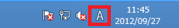 - デスクトップのタスクバーの右側にある「A」または「あ」にマウスカーソルを合わせ、マウスの右ボタンをクリックします。