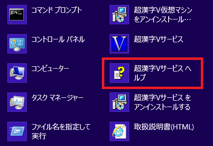 - 「超漢字V」内の「超漢字Vサービスヘルプ」をクリックします。