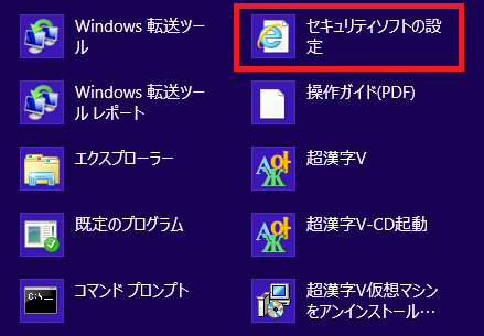 - 「超漢字V」内の「セキュリティソフトの設定」をクリックします。