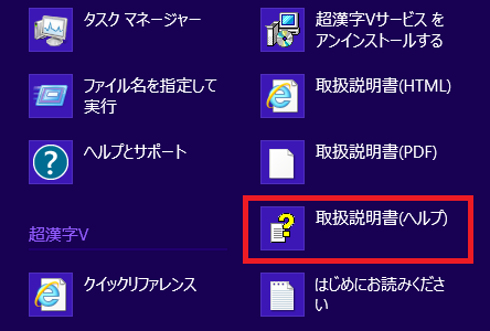 - 「超漢字V」内の「取扱説明書(ヘルプ)」をクリックします。