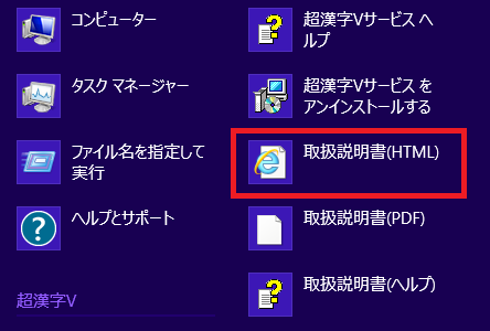 - 「超漢字V」内の「取扱説明書(HTML)」をクリックします。