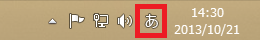 - デスクトップのタスクバーの右側にある「A」または「あ」にマウスカーソルを合わせ、マウスの右ボタンをクリックします。