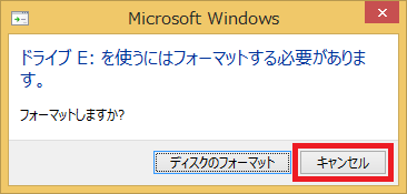 - BTRON形式の外部記憶装置(USBメモリ等)をパソコンに接続した際に、「フォーマットしますか?」と表示される場合があります。その場合、[キャンセル]をクリックしてください。