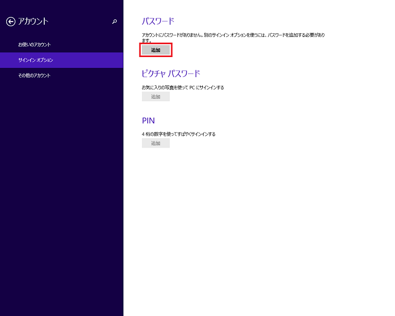注意:MicrosoftアカウントでWindows 8.1にサインインしている場合は、以下の設定は不要です。