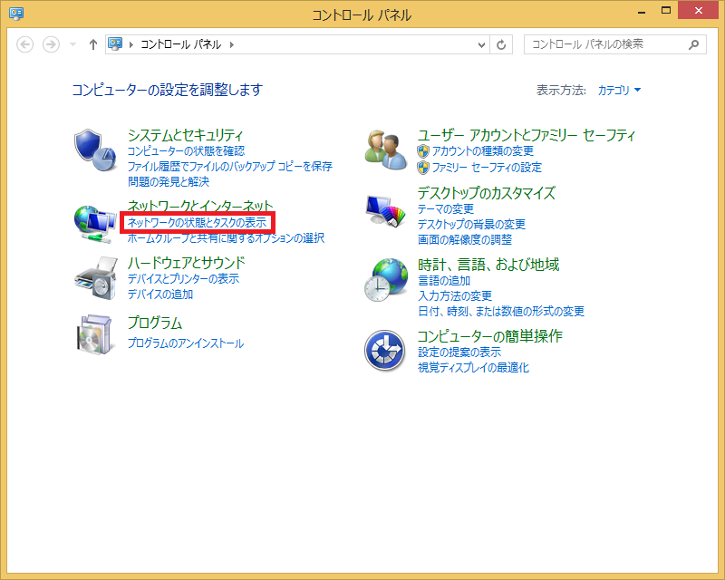 - 〈ネットワークとインターネット〉の項目にある「ネットワークの状態とタスクの表示」をクリックします。