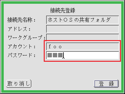 - 「ホストOSの共有フォルダ」が選ばれている状態で、[編集]メニューの[接続先設定]を選びます。