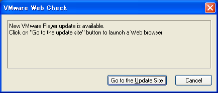 このメッセージが表示されるのは、VMware Playerの最新版がインターネット上で公開されたためです。