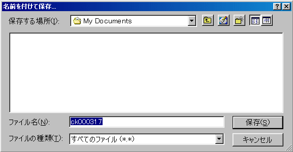 「ファイルのダウンロード」というウィンドウが現れます。 「このプログラムをディスクに保存する」 にチェックが入っていることを確認して、[OK]をクリックします。 「名前を付けて保存...」ウィンドウが現れます。