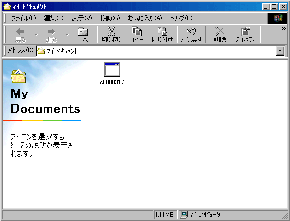 注:ここでは、C: ドライブのMy Documents (マイドキュメント)フォルダを保存先としていますが、それ以外の任意のフォルダでも構いません。ダウンロードが開始され、ダウンロードの進行状況が表示されます。