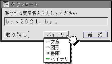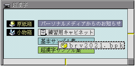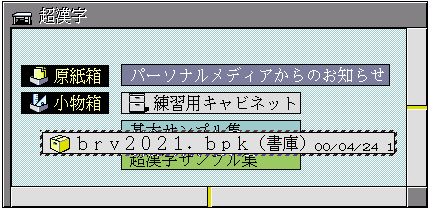 ダウンロードした書庫実身 brv2030.bpk を指す仮身が、